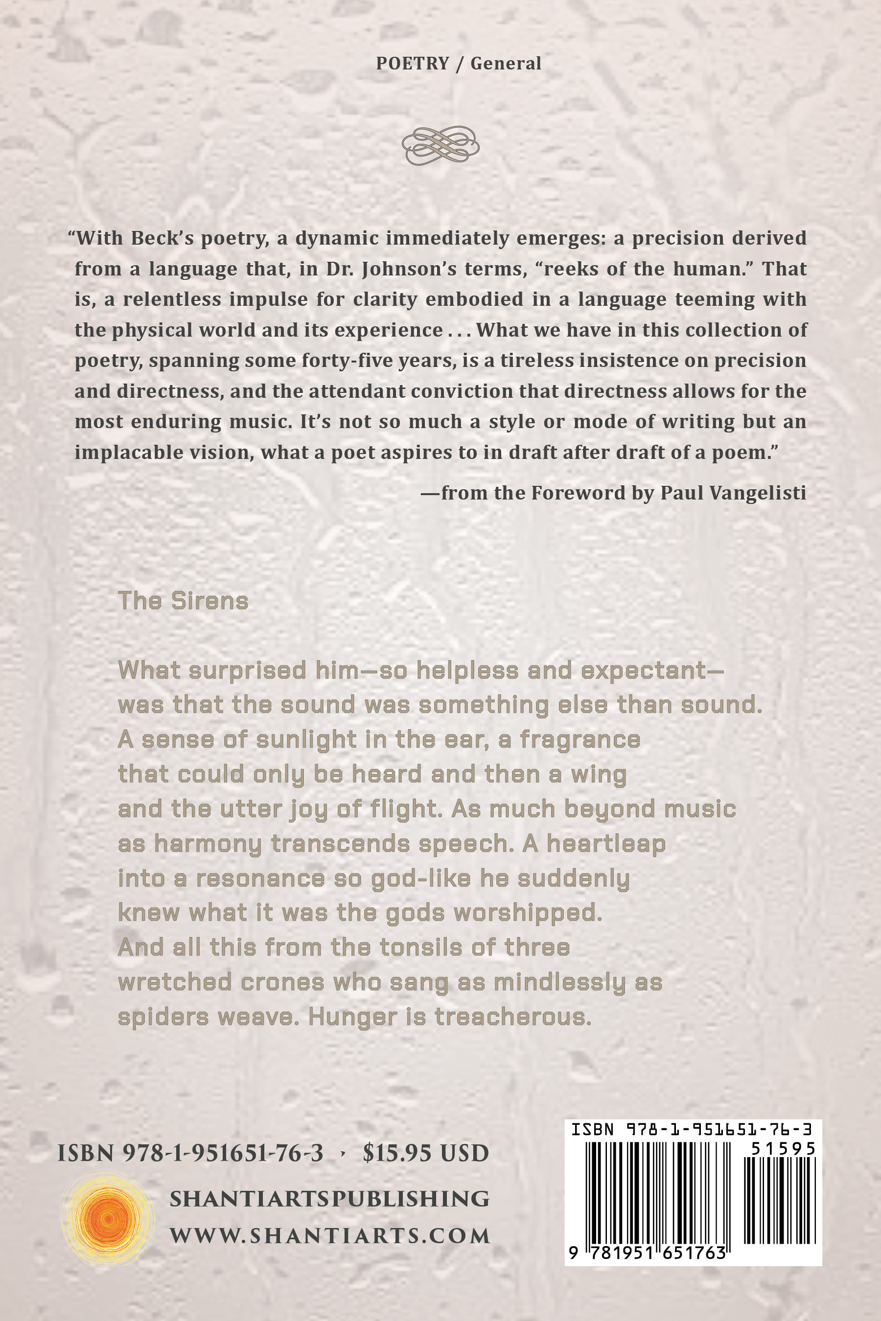 Art Beck is a poet, essayist, and translator whose work has appeared in books and magazines since the early 1970s. Translations of Rainer Maria Rilke’s poems were published in Etudes: A Rilke Recital (Shanti Arts, 2020), which was a finalist for the 2021 Northern California Book Awards. His Opera Omnia Or, a Duet for Sitar and Trombone, versions of the sixth-century CE North African Roman poet Luxorius (Otis Books/Seismicity Editions, 2013) won the 2013 Northern California Book Award for translated poetry. Mea Roma (Shearsman Books, 2018), a 140-poem “meditative sampling” of Martial’s epigram was awarded Honorable Mention in the American Literary Translators Association 2018 Cliff Becker Prize. In 2019, his poetic sequence The Insistent Island was published by Magra Books in its annual chapbook series. From 2009 through 2012, Beck was a regular contributor to Rattle, with essays on translating poetry under the rubric “The Impertinent Duet.” His articles on the translator’s art have appeared in Jacket2, Your Impossible Voice, The Journal of Poetics Research, PN Review, and The Los Angeles Review of Books. He makes his home in San Francisco. Paul Vangelisti is the author of more than thirty books of poetry as well as being a noted translator from Italian. Recently, his sonnet sequence Imperfect Music was published in a limited, bilingual edition by Galleria Mazzoli Editore in Modena. In 2015 he edited for Grove Press, Amiri Baraka’s posthumous collected poems, S.O.S.: Poems, 1961–2014. In 2006 Lucia Re’s and his translation of Amelia Rosselli’s War Variations won both the Premio Flaiano in Italy and the PEN-USA Award for Translation. In 2010 his translation of Adriano Spatola’s The Position of Things: Collected Poems, 1961–1992 won an Academy of American Poets Prize. He lives in Pasadena (California) and Bagnone (Italy). |