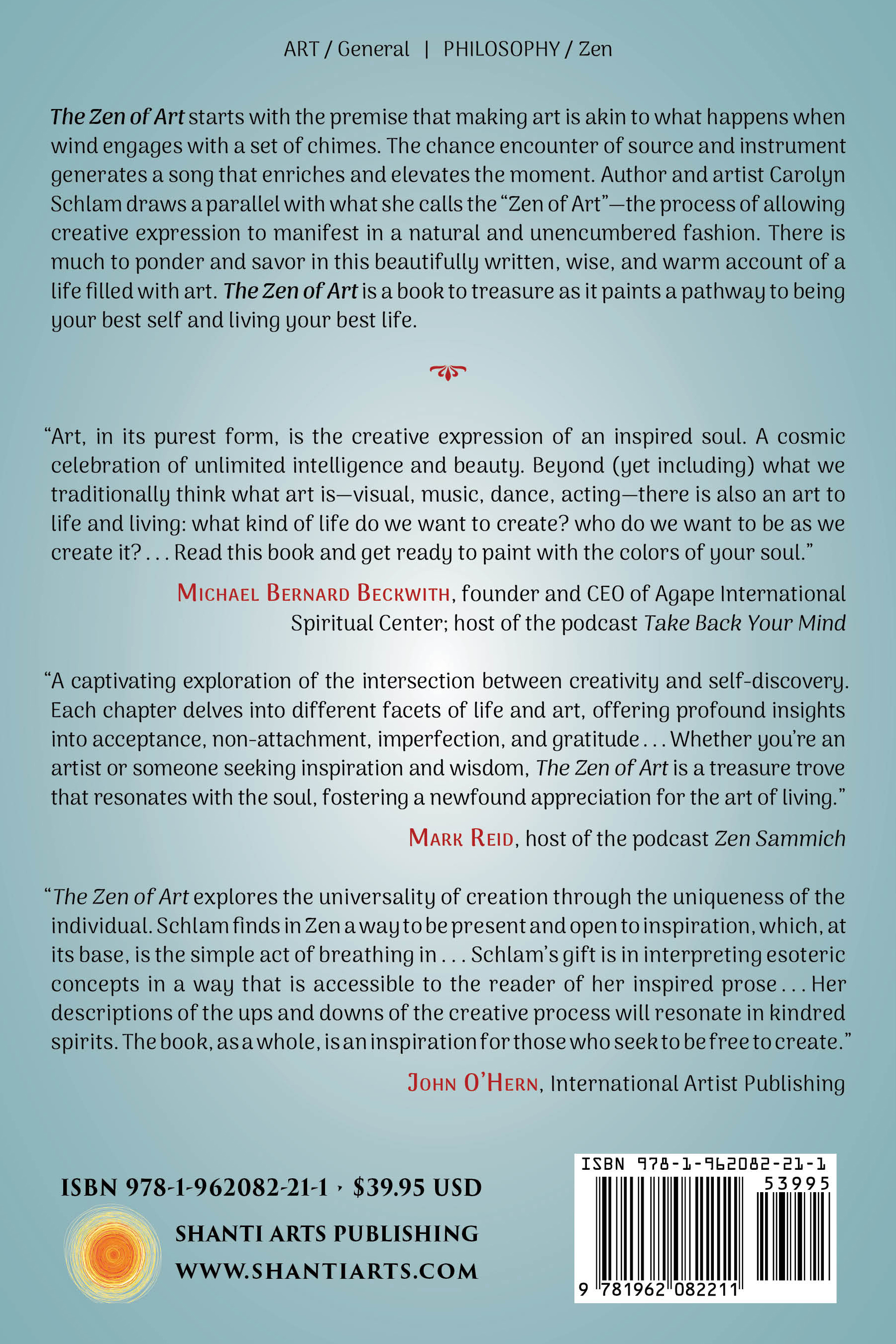 “Art, in its purest form, is the creative expression of an inspired soul. A cosmic celebration of unlimited intelligence and beauty. Beyond (yet including) what we traditionally think what art is—visual, music, dance, acting—there is also an art to life and living: what kind of life do we want to create? who do we want to be as we create it? The Zen of Art answers these questions and more, as it delves into what it means to be the instrument or medium through which Source gets to express its full Self in, through, and as us once we know how to tune into its frequency. Read this book and get ready to paint with the colors of your soul.” “A captivating exploration of the intersection between creativity and self-discovery. Each chapter delves into different facets of life and art, offering profound insights into acceptance, non-attachment, imperfection, and gratitude. More than just a guide to artistic expression, it invites readers to ‘dance with the wind’ and embrace the naturalness of the creative process. Whether you’re an artist or someone seeking inspiration and wisdom, The Zen of Art is a treasure trove that resonates with the soul, fostering a newfound appreciation for the art of living.” “The Zen of Art explores the universality of creation through the uniqueness of the individual. Schlam finds in Zen a way to be present and open to inspiration, which, at its base, is the simple act of breathing in. The biblical wind of creation breathed in by every creature throughout time animates our physical processes and enables the creative act of making marks or writing verbal or musical notes. Schlam’s gift is in interpreting esoteric concepts in a way that is accessible to the reader of her inspired prose. She writes, ‘I am not a guru or a sage. I am an ordinary person who has endeavored, like you, to become mindful, to learn, and to grow as a person.’ Her descriptions of the ups and downs of the creative process will resonate in kindred spirits. The book, as a whole, is an inspiration for those who seek to be free to create.” |